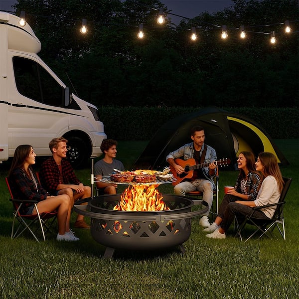 30 in. Outdoor Wood Burning Fire Pit with Cooking Grill