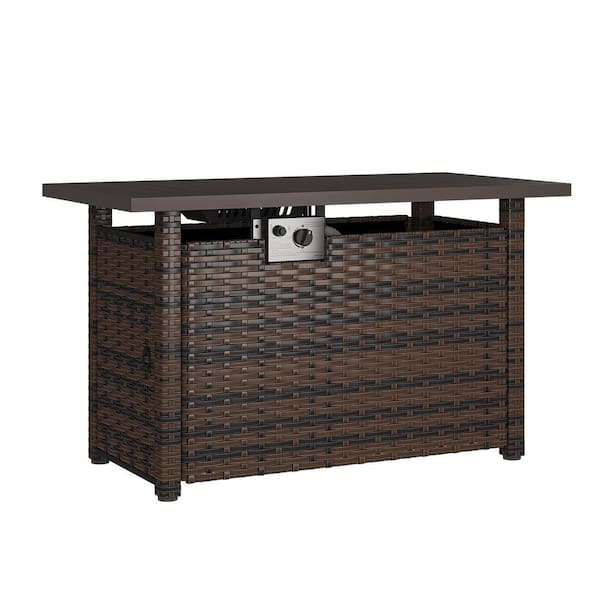 44 in. Wicker Rectangular Propane Gas Fire Pit Table with Wood grain tabletop And Waterproof Cover