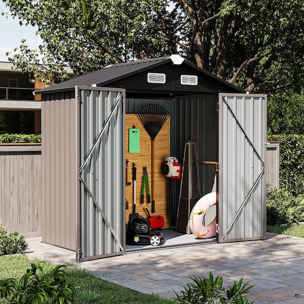 6 ft. x 4 ft. Metal Storage Brown Shed with Lockable Door, Plastic Floor (22 sq. ft.)