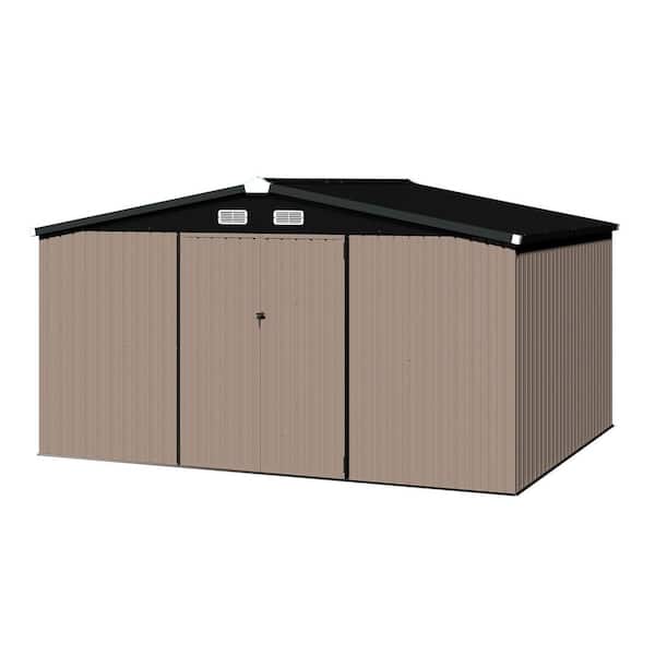 8 ft. W x 6 ft. D Metal Storage Shed with Plastic Floor, Double Door, Air Vents, Brown (42 sq. ft. )