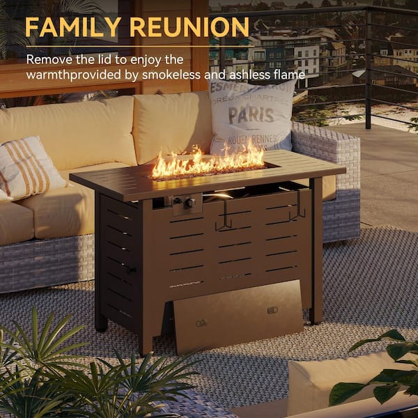 Brown 40 in. Metal Rectangular Propane Gas Fire Pit Table with Lid, Volcanic Rock, and Waterproof Cover
