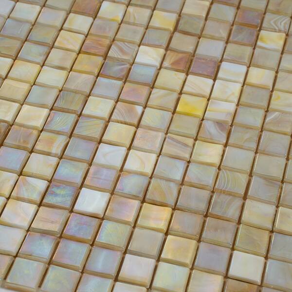 Skosh 4" x 6" Glossy Bisque Beige Glass Mosaic Uniform square Wall and Floor Sample Tile (0.13 sq. ft./Piece) (1-Pack)