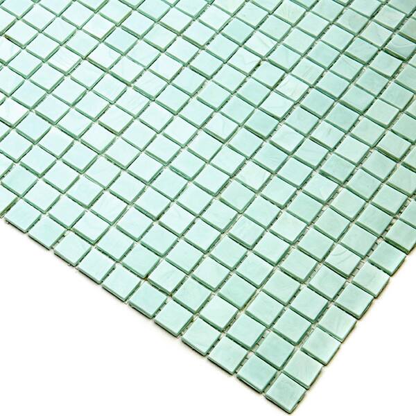 Skosh 4" x 6" Glossy Light Blue-Green Glass Mosaic Uniform square Wall and Floor Sample Tile 0.13 sq. ft./Piece (1-Pack)