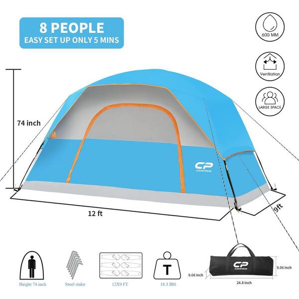 Sky Blue 8-Person Camping Tents, Waterproof Windproof Family Dome Tent with Rainfly, Large Mesh Windows, Wider Door