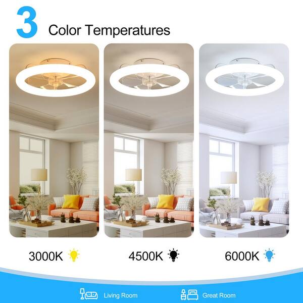 20 in. Indoor Integrated LED White Industrial Cage Enclosed Low Profile Ceiling Fan and-Light Kit and Remote Control