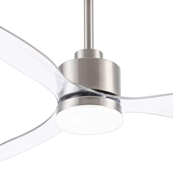 Reagan 52 in. Indoor Integrated LED Clear-Blade Satin Nickel Ceiling Fan with Light Kit and Remote Control Included