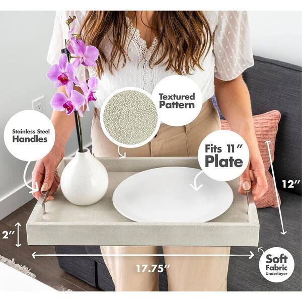 Sleek 16 in. x 12 in. Modern Rectangle Silver Faux Leather Decorative Serving Tray