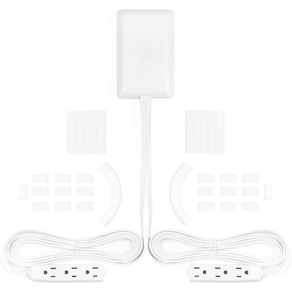 Two 8 ft. Ultra-Thin Electrical Outlet Cover with Side-by-Side 3-Outlet Power Strips and Cord Management Kit