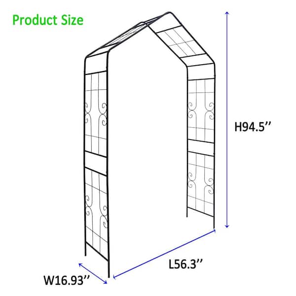 Sleek and Spacious 94.5 in. x 56.3 in. Iron Garden Arch Arbor with Rust-Resistant Powder Coating