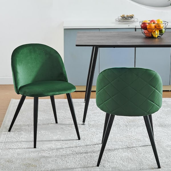 Slip Zomba Green 5-Pcs Dining Set with Glass Top Black Leg Table and Velvet Upholstered Chairs