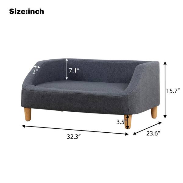 Small 32 in. Grey Pet Sofa Bed with Movable Cushion with Wood Style Foot