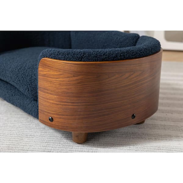 Small Elevated Dog Bed Pet Sofa Solid Wood legs and Walnut Bent Wood Back Cashmere Cushion in Dark Blue