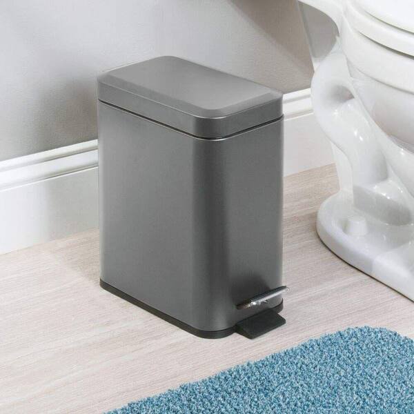 Small Modern 1.3 Gal. Rectangle Metal Lidded Step Trash Can in Graphite Gray