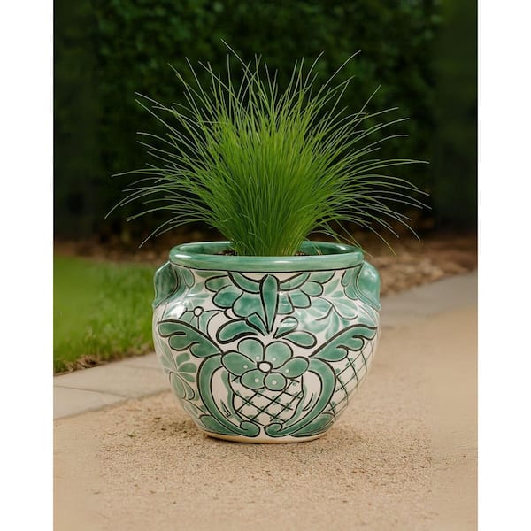 Small Traditional 12 in. W x 10.0 in. H Teal Talavera Ceramic Indoor Planter