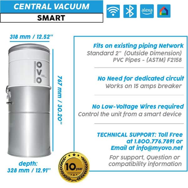 Smart Control Bagless and Bagged Corded Washable Filter Multisurface Central Vacuum 750AW 2-Stage Ametek Motor 35L