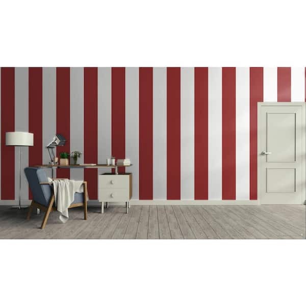 Smart Stripes 3 Red/White Widest Stripe Matte Finish Non-Pasted Vinyl on Non-Woven Wallpaper Roll
