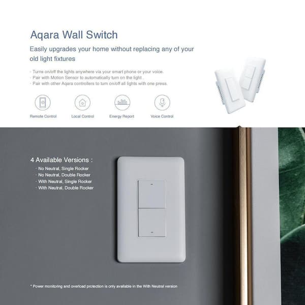 Smart Wall Switch (with Neutral, Double Rocker), Requires AqaraHub, Remote Control and Timer for Home Automation