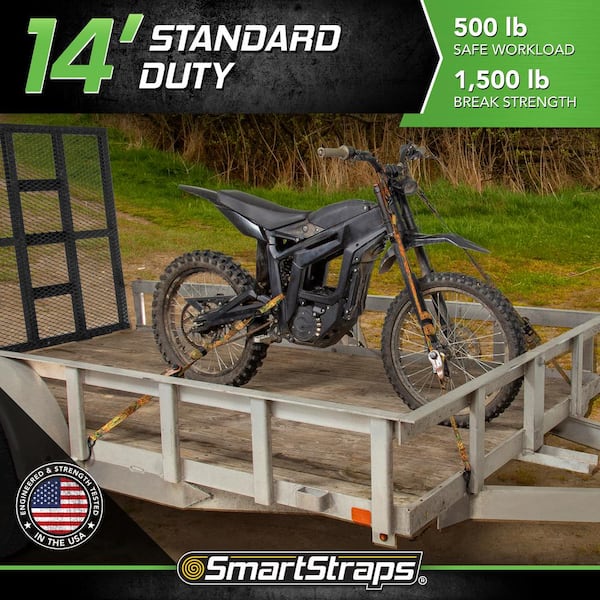 • For securing lighter loads like dirt bikes, ATVs and lawn mowers