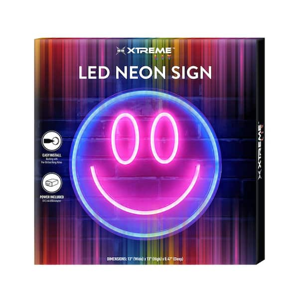 "Smiley Face" 1-Piece Unframed with LED Light Neon Sign, Home Wall Art 13 in. x 13 in.
