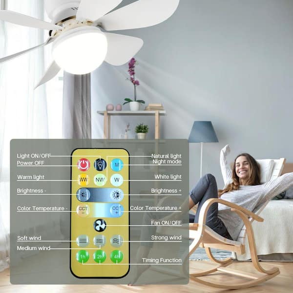 Socket Ceiling Fan 1.38 ft. Indoor White Socket Ceiling Fan with Remote Control, E26 Socket Screw-In