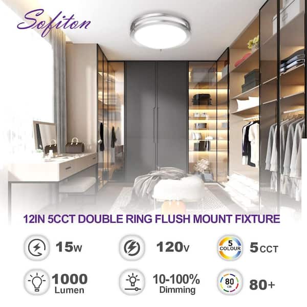 12in. Brushed Nickel Dimmable Integrated LED Flush Mount Light 15W 1000 Lumens Ceiling Light 2700-5000K