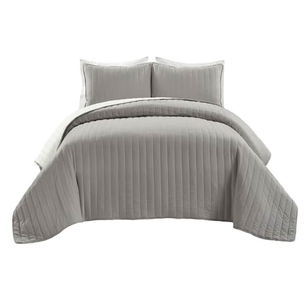Soft Stripe All Season Light Gray/White Quilt/Coverlet King Set (3-Piece)