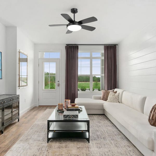 • Modern ceiling fan with 5-MDF blades and a matte black finish