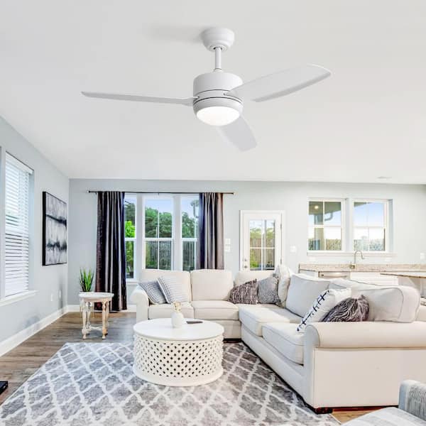 46 in. Indoor/Outdoor Modern White Ceiling Fans with Dimmable LED Light and 6-Speed Remote Control