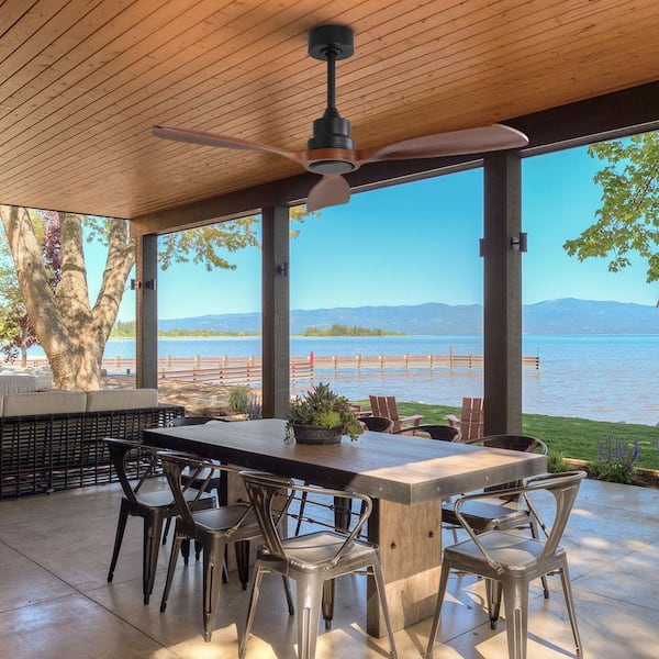 48 in. Indoor/Outdoor Black Wood Ceiling Fan without Lights, Remote Control and 6-Speed DC Motor