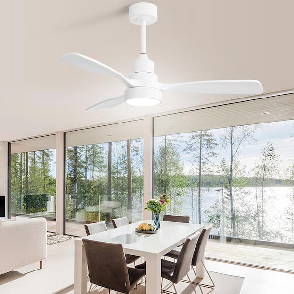 48 in. Indoor/Outdoor Wood White Ceiling Fan with Light Kit, Remote Control and App