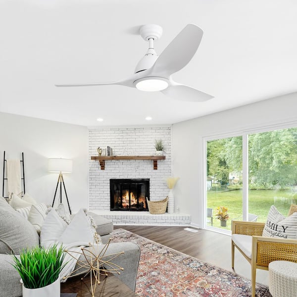 52 in. Indoor Integrated LED White Ceiling Fan With Light Kit and Remote Control, Reversible Motor