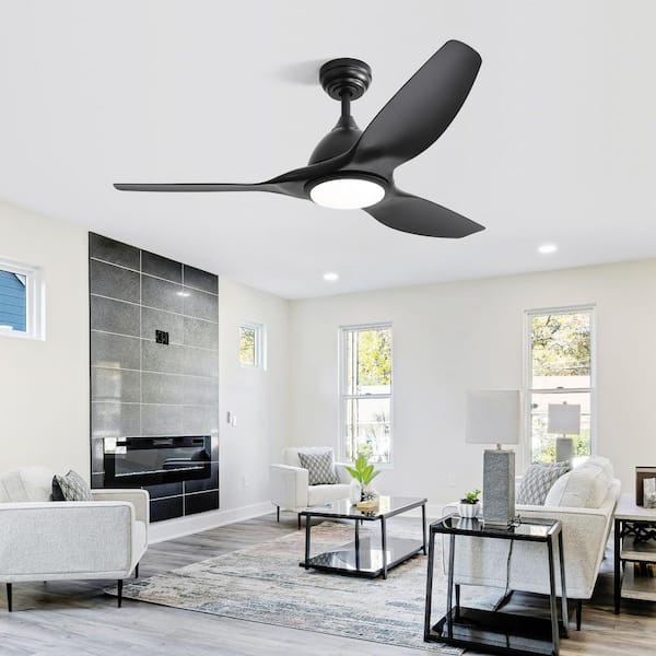 52 in. Indoor/Outdoor Black Downrod Mount Ceiling Fan with Dimmable LED Light and 6 Speed Remote Control