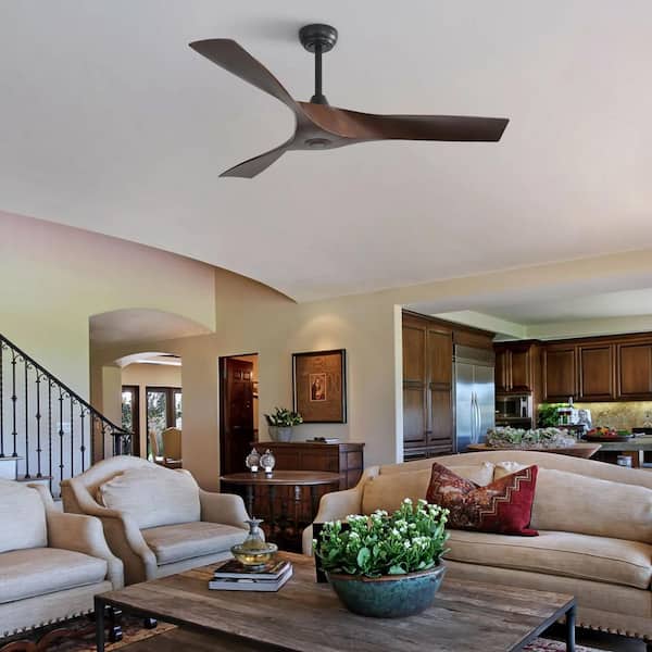 52 in. Indoor/Outdoor Downrod Black Ceiling Fan without Light with Reversible 6-Speed DC Remote