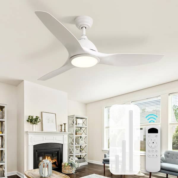52 in. Indoor/Outdoor White Downrod Mount Ceiling Fan with Dimmable LED Light and 6 Speed Remote Control