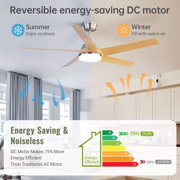 52 in. Indoor Silver Ceiling Fan with Remote Control and LED Lights