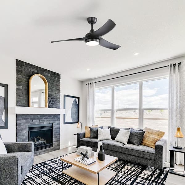 52 in. Integrated LED Indoor/Outdoor Black Downrod Ceiling Fan with Dimmable Light Kits and 6-Speed DC Remote Control
