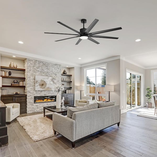 76 in. Indoor/Outdoor Smart Black Ceiling Fan with Dimmable LED Light Remote 8-Wood Blades Works with Phone Voice