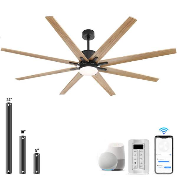 76 in. Indoor/Outdoor Smart Black Ceiling Fan with LED Light Remote 8 Wood Blades Works with Phone