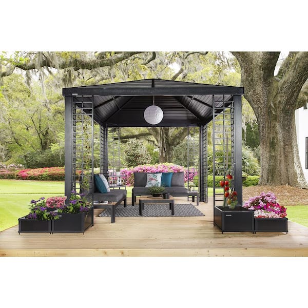 Havana 10 ft. x 10 ft. Black Aluminum Framed Gazebo with Planters