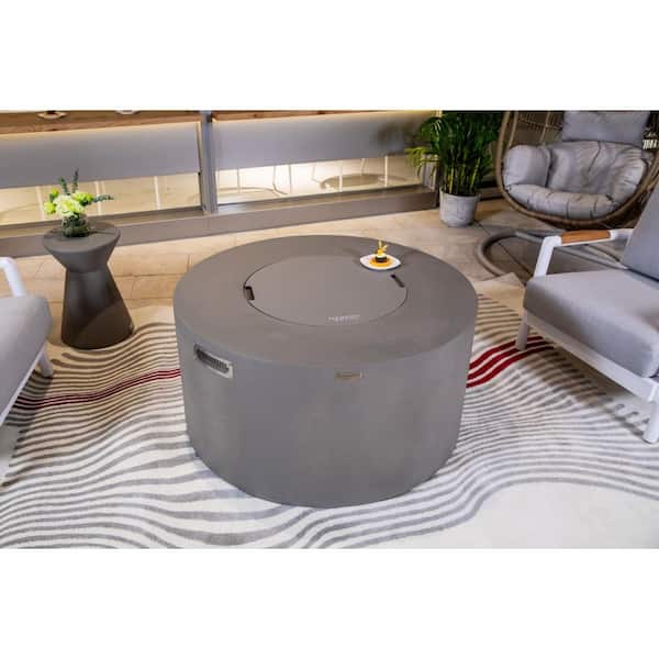 Pacaya 43 in. 45000 Btu's Light Grey Concrete Propane Outdoor Fire Pit with Lava Rocks and Cover