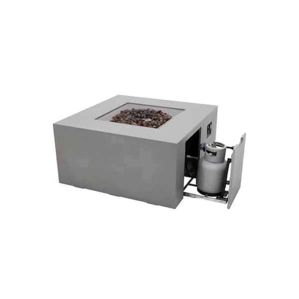 Rocky 43 in. 45000 Btu's Light Grey Concrete Propane Outdoor Fire Pit with Lava Rocks and Cover