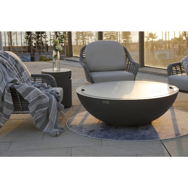 Rose Bowl 48 in. 60000 Btu's Light Grey Concrete Propane Outdoor Fire Pit with Lava Rocks and Cover