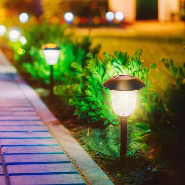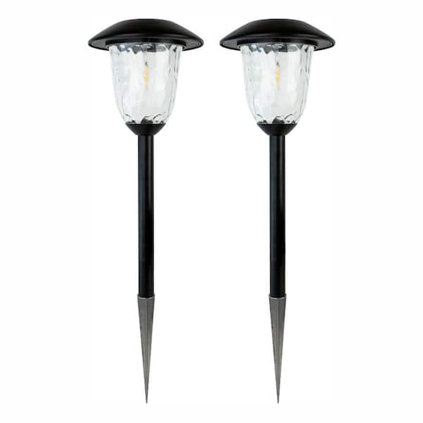 Solar Black Outdoor Integrated LED Filament-Style Landscape Path Light (2-Pack)