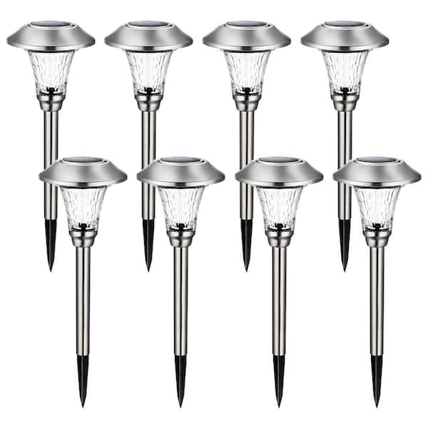 Solar Metallic Sliver Integrated LED Path Light (8-Pack)