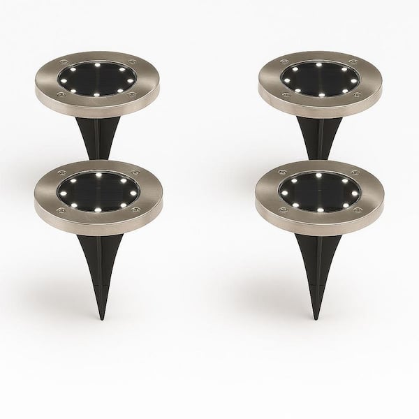 Solar Silver LED Weather Resistant In-Ground Disk Path Light (4-Pack)