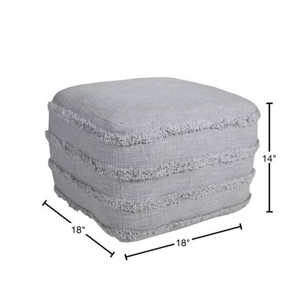 Solid Light Gray 18 in. x 18 in. x 14 in. Textured Stripe Pouf Ottoman