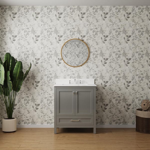 Solid Wood 29.92 in. W. x 19.09 in. D x 34 in. H Single Sink Bath Vanity in Gray with Carrara White Natural Marble Top