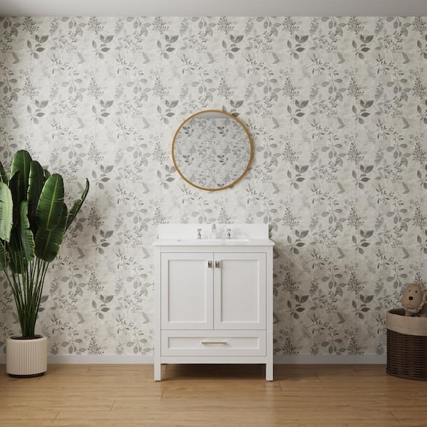 Solid Wood 29.92 in. W. x 19.09 in. D x 34 in. H Single Sink Bath Vanity in White with Carrara White Natural Marble Top