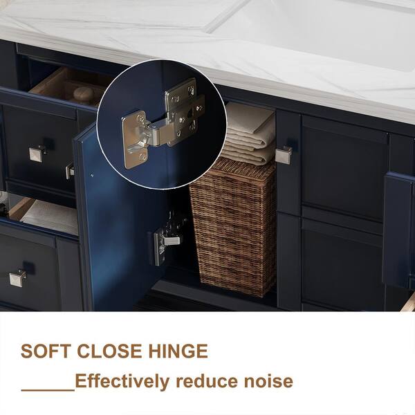 Solid Wood 48 in. W x 22 in. D x 39.3 in. H Single Sink Bath Vanity in Navy Blue with Carrara White Natural Marble Top