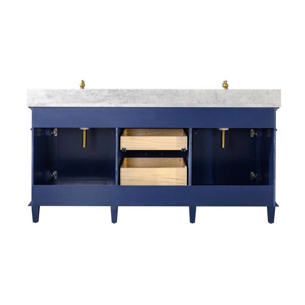 Solid Wood 72in. Freestanding Blue Bath Vanity with White Marble Top Assembled